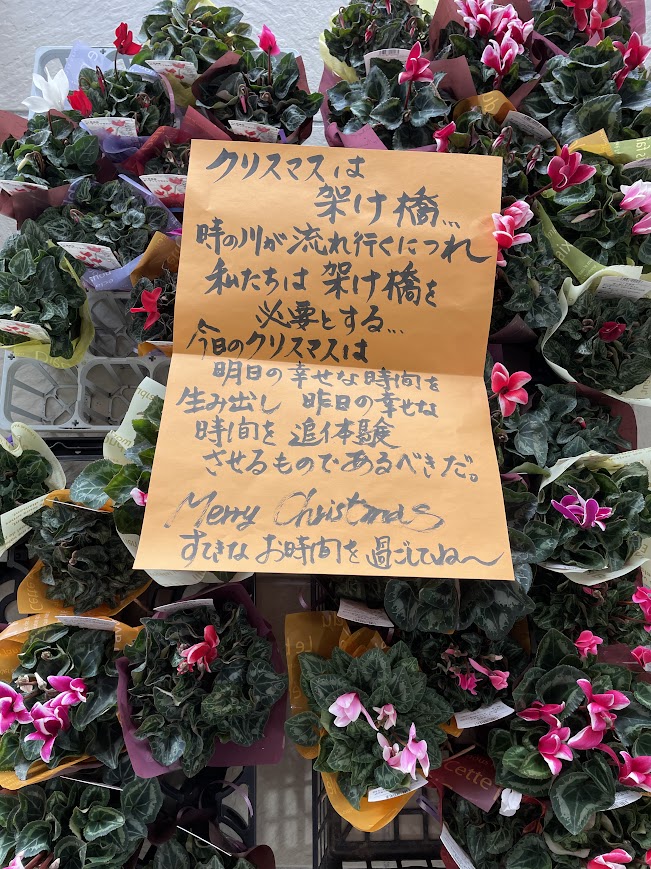 寄贈していただきました!【2025.12.09】保護者の方より、今年も素敵なお花を素敵なメッセージと共に寄贈していただきました。生徒たちに素敵な時間を過ごしてもらえるよう私たち教職員も願っております。